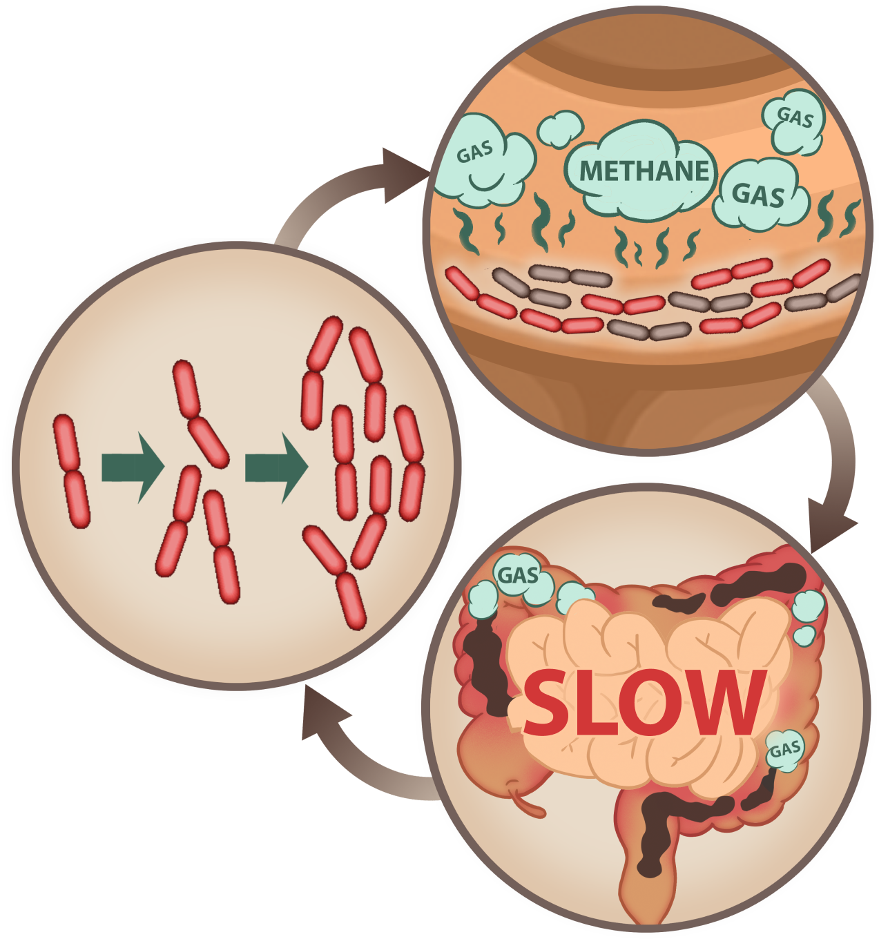 But it's unhealthy to have diarrhea over a long period of time because it causes dehydration. So after a while, your body might give up, let Archaea take over as your body settles into chronic, long-term constipation.